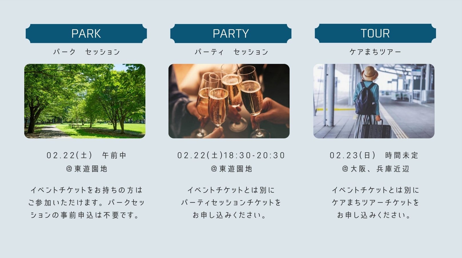 ※当日午前中にパークセッション、夜にパーティセッション、翌日にツアーセッションあり
